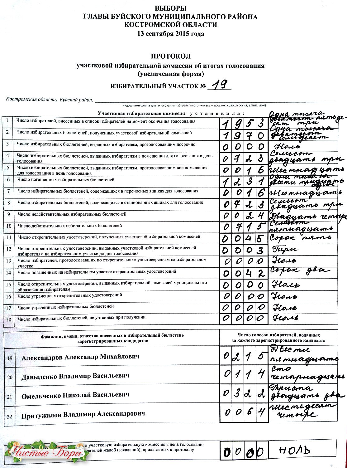 Протоколы участковой избирательной комиссии об итогах голосования.