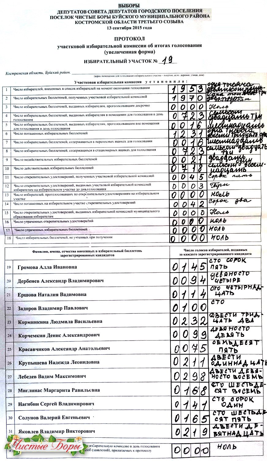 Результаты голосования 13 сентября 2015 г.